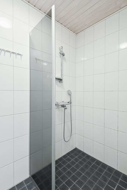 - WC-istuin, suihku, pesukoneliitäntä, pesuallas, peili, allaskaappi, suihkuseinä, bidee-suihku, ja lattialämmitys