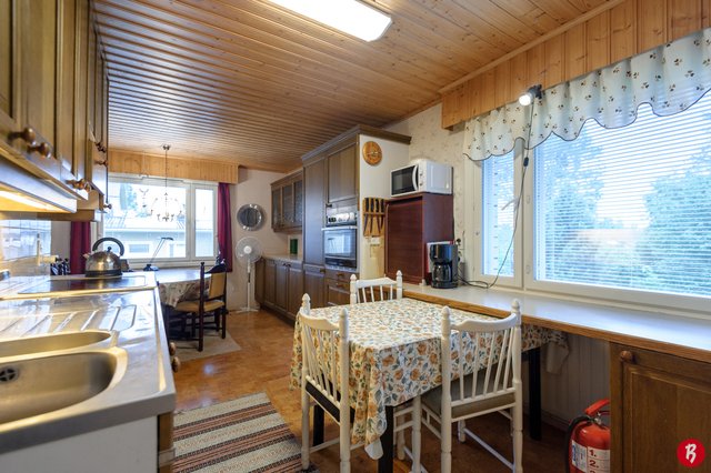 Tämä koti sijaitsee rauhallisella asuinalueella isohkolla 2000 m2 tontilla. Talossa on tilaa isommallekin perheelle.