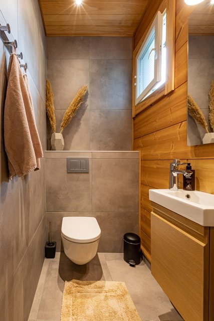 - WC-istuin, suihku, suihkuseinä, peili, pesuallas, ja bidee-suihku