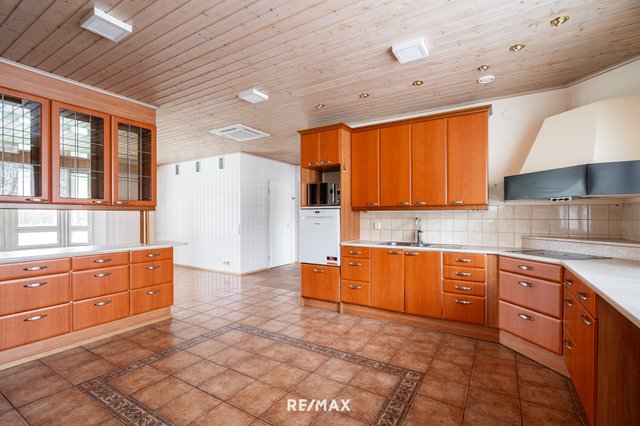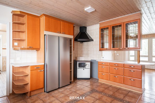 - Jääkaappipakastin (Side by side), erillisuuni, liesi, liesituuletin, astianpesukone, puuhella, ja keittiösaareke