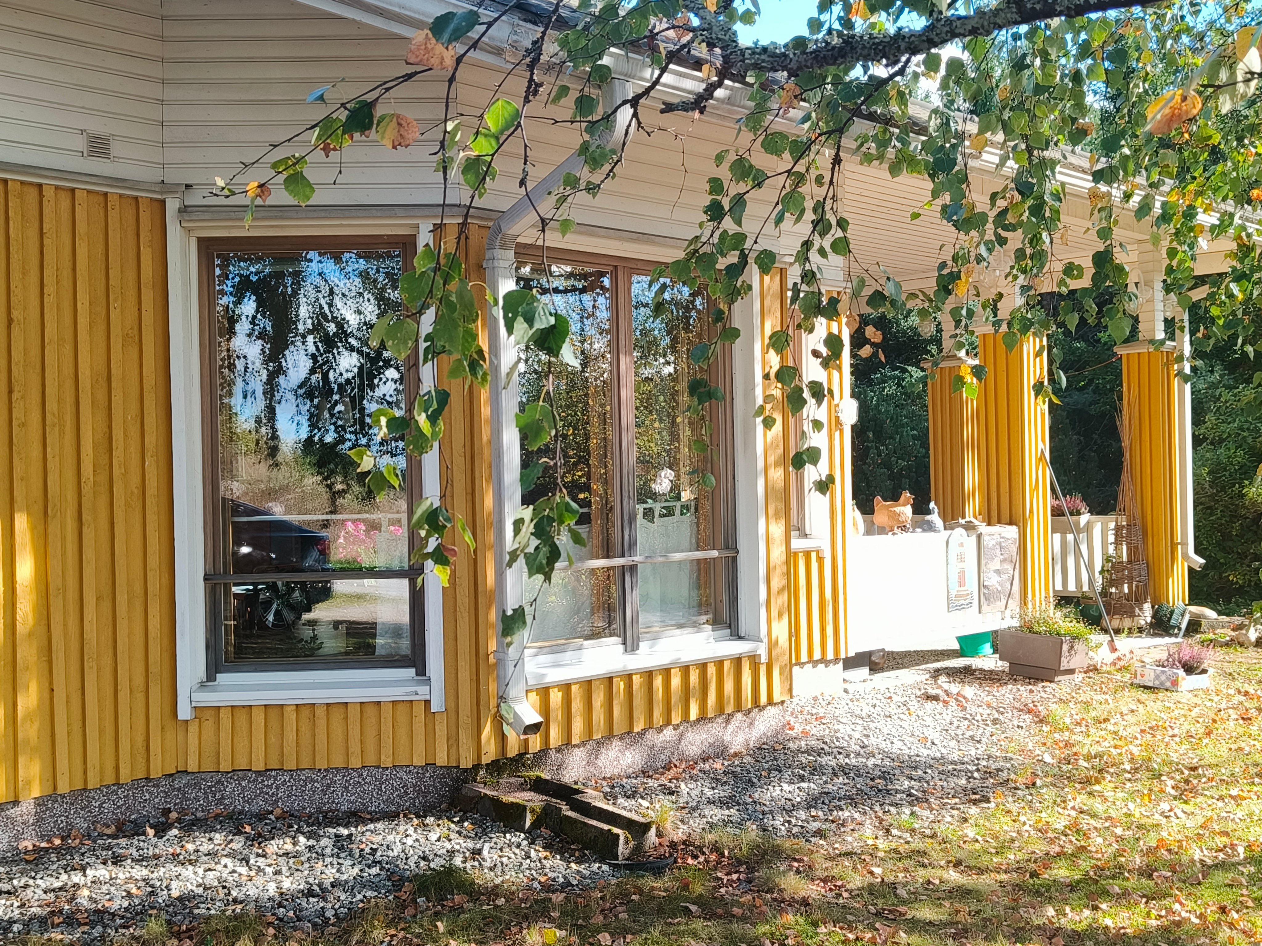 - Pääoven edessä on terassi ja talon takana noin 12 neliötä lasitettua terassitilaa.