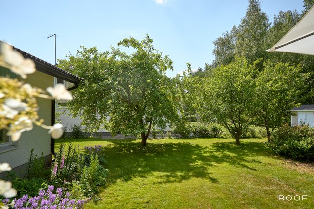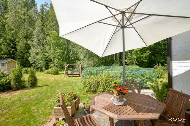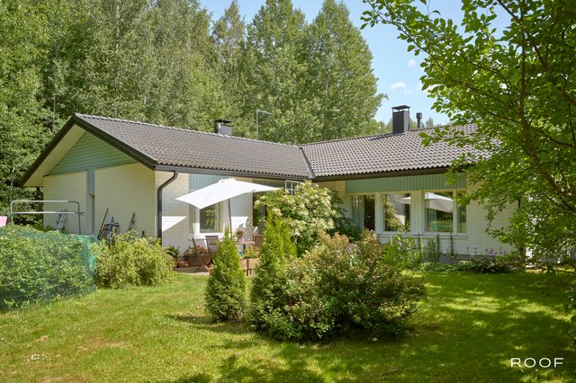 Rakennuksen vaalea tiiliverhoilu on ajaton ja huoltovapaa, mikä tekee talosta helppohoitoisen. Lämmitysmuotona on kaukolämpö, joten lämmityskulut ovat edulliset ja varaava takka sekä leivinuuni tuovat lisälämpöä ja viihtyisyyttä kylminä talvi-iltoina. Suojaisa pihapiiri rajoittuu metsikköön, tarjoten rauhaa ja yksityisyyttä. Talon sivustalla on ruhtinaalliset parkkitilat, jonne mahtuu tarvittaessa niin peräkärryt, pakettiautot kuin asuntoautot.