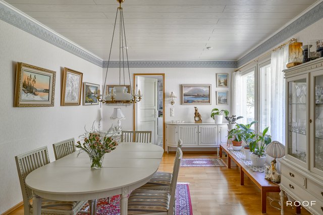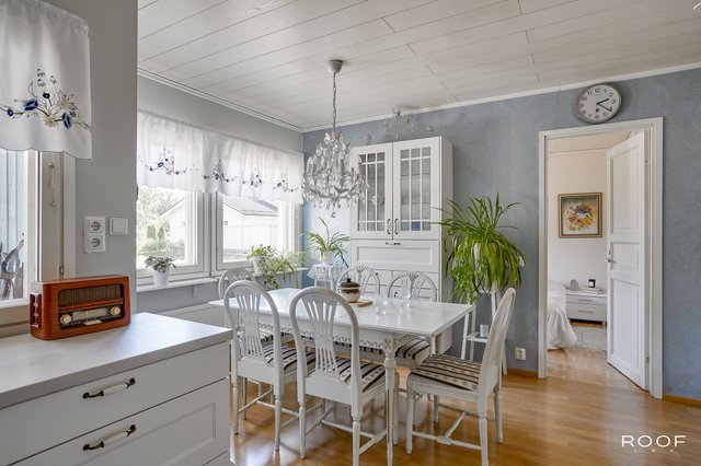 Tämä viehättävä, 1990-luvulla rakennettu omakotitalo vapautuu alkuperäiseltä omistajaltaan. Yhdessä tasossa sijaitseva koti tarjoaa mukavuutta ja toimivuutta. Vuonna 2016 remontoitu, vaaleasävyinen keittiö on kodin sydän, jossa leivinuuni luo lämpöä ja kodikkuutta. Tilavat ja monikäyttöiset asuintilat mahdollistavat monenlaiset sisustusratkaisut. Makuuhuoneita on kolme, joista yksi toimii nyt oleskeluhuoneena. Lisäksi talossa on autotalli ja runsaasti varastotilaa.