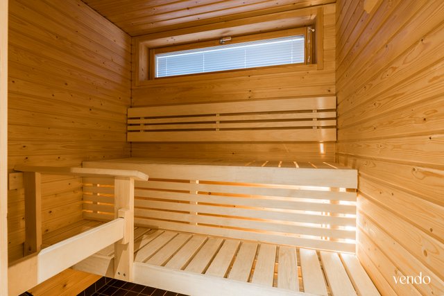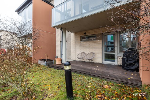 Asunnon alakerrassa on eteinen, kylpyhuone saunalla, makuuhuone sekä käynti omalle terassille. Yläkerrassa on tilava olohuone/keittiö, kylpyhuone, makuuhuone sekä lasitettu parveke. Asuntoon kuuluu tilava autotalli/varasto asunnon vieressä.