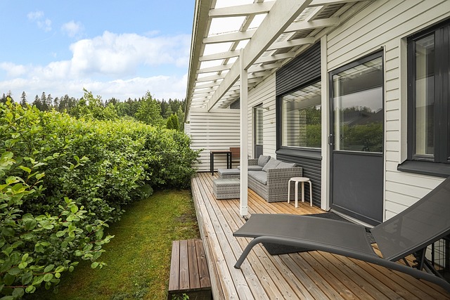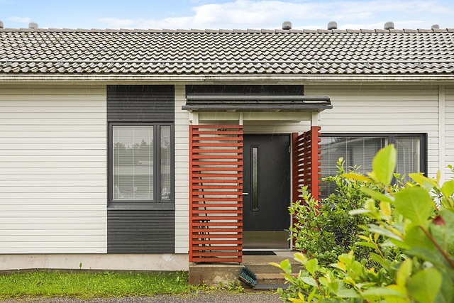 - Läpitalon huoneisto; makuuhuoneet yhtiön sisäpihalle pohjoiseen, olohuone ja käynti saunaosastolta etelään terassille, jossa suojaisa pensasraja-aita.