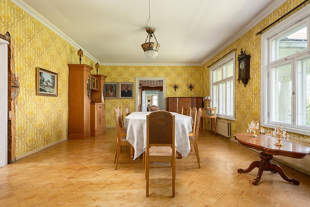 - Itäpäässä lattia on laatoitettu ja laminaattia. Keskiosassa, sekä länsipäädyssä puuta, muovimattoa ja vanhaa parkettia. Länsipäädyn kosteat tilat on laatoitettu.