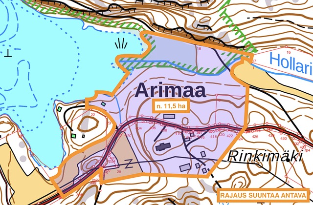 - Kauppaan kuuluvat määräalat ja tilat, yhteensä n. 11,5ha: Tilasta 444-515-4-2 ARIMAAN KARTANO (Kantatila 96,3ha) myydään määräala n. 10,04ha Tilasta 444-515-4-1 VIINIMÄKI (Kantatila 2,3ha) määräala n. 0,87ha Tila 444-515-4-4 KAISANIEMI (asuinrakennuspaikka) kokonaan n. 0,59ha Lisähintaan mahdollisuus ostaa: Niemen mökki (n. 50m2) n. 0,75ha kantatilasta Arimaan Kartano 444-515-4-2 100 000€. Rakennusoikeus rantakaavan mukaan Niemessä 70m2. Viinimäen mökki (n. 70m2) n. 0,8ha kantatilasta Arimaan Kartano 100 000€. Rakennusoikeus rantakaavan mukaan Viinimäellä 150m2. Hirvenkallion lomarakennuspaikat 2 kpl, yhteensä 1,25ha kantatilasta Arimaan Kartano 75 000€/kpl. Rakennusoikeus Hirvenkalliolla 150m2 per rantatontti. Kyläntakasen lammelta 4 lomarakennuspaikkaa yhteensä n. 4,75ha yhteishintaan 100 000€. Kyläntakasen ranta-asemakaavan alueella RA-1 loma-asuntojen rakennuspaikoilla rakennusoikeus 120 k-m2 per tontti. Yksi tonteista on lohkomaton. Muut kolme tonttia ovat 444-515-3-45 LEHTORANTA (RA-1 tontti) kokonaan 0,4050 ha, 444-515-3-46 MÄKILAAKSO (RA-1 tontti) kokonaan 0,4130 ha, 444-515-3-48 MÄKIRANTA (RA-1 tontti) kokonaan 0,4770 ha. Lisäksi tonttien ympäriltä määräala tilasta Kolli 444-515-3-55 n. 3,455 ha karttaluonnoksen mukaan.