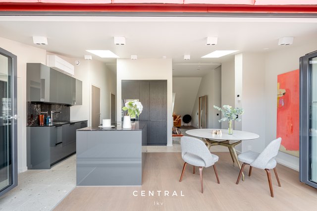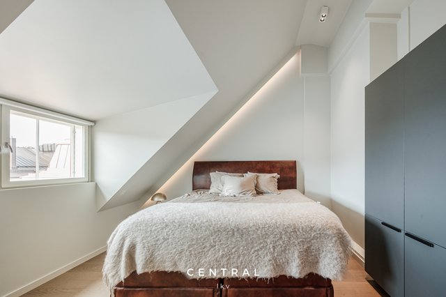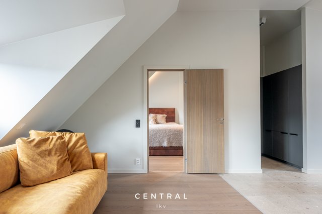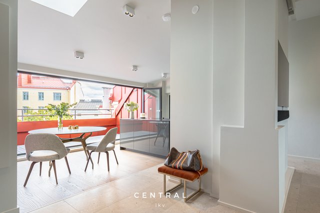 Tämä kahden makuuhuoneen asunto yhdistää hienostuneesti vanhan ajan charmia, korkeatasoista tyyliä ja modernia mukavuutta. Kylpyhuoneen yhteydessä on oma sauna rentouttavia hetkiä varten.