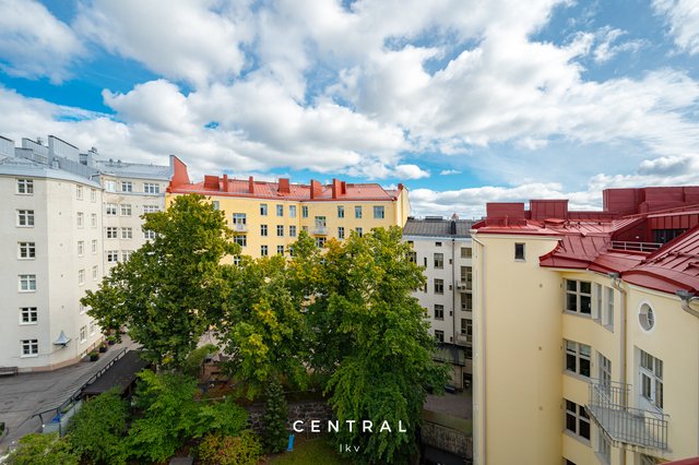 Etu-Töölössä aivan Helsingin ydinkeskustan tuntumassa sijaitsevan vuonna 1912 valmistuneen kauniin jugendtalon ylimmän kerroksen läpitalon huoneisto. Tämä persoonallinen kattohuoneisto on rakennettu vuonna 2023 ja toteutettu ensiluokkaisilla materiaaleilla, kalusteilla ja laitteilla. Korkeat huoneet ja upeat kaupunkinäkymät. Oma rauha ja harmonia, keskellä kaupungin sykettä. Isosta terassiparvekkeesta, jossa koko seinäsivun avattavat lasiliukuovet, on vehreät näkymät kauniille korttelipihalle koilliseen.