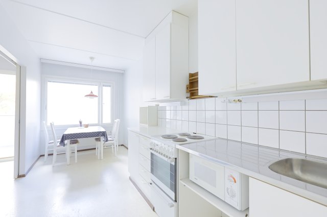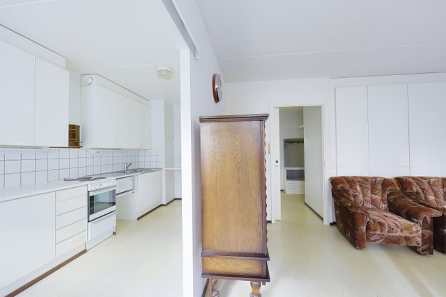 - Tilava olohuone, joka on muokattavissa avaraksi tilaksi keittiön yhteyteen. Käynti lasitetulle parvekkeelle. Kaapistot.