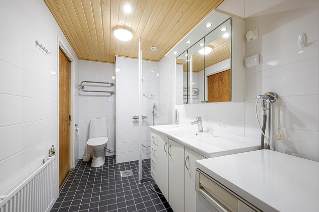- Suihkuseinä, wc-istuin, peilikaappi, suihku, ja kiinteät valaisimet