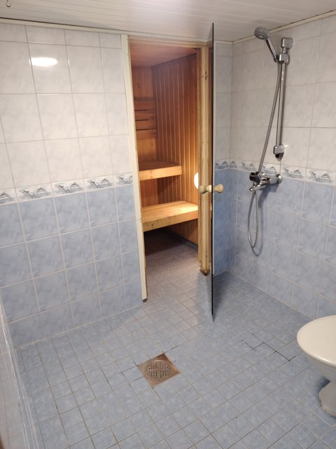- WC-istuin, lattialämmitys, peilikaappi, pesuallas, ja suihku