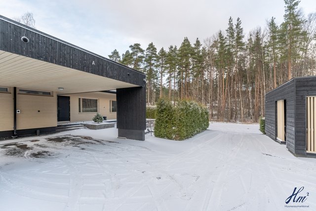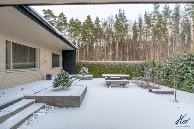 Suuret, osittain katetut terassit etu- ja takapihalla tarjoavat täydelliset puitteet ulkoilmaelämälle ja yhdessäololle. Metsäinen takapiha ja viihtyisä piha-alue luovat rauhallisen ympäristön, jossa on mukava viettää aikaa perheen ja ystävien kanssa.
