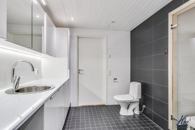 Kodin sydämessä on upea sauna, jossa voit rentoutua päivän päätteeksi. Kylpyhuone on varustettu nykyaikaisilla mukavuuksilla, ja erillinen wc lisää sujuvuutta. Talon lämmitysjärjestelmänä toimii maalämpö, joka on sekä taloudellinen että ympäristöystävällinen valinta.