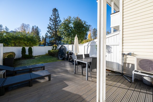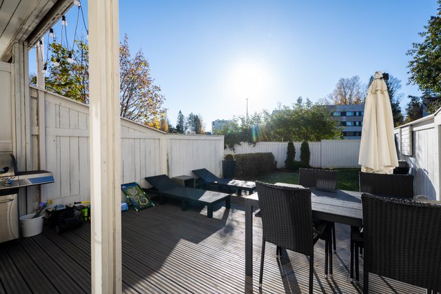 Oma piha-alue ja parveke tarjoavat mukavat ulkotilat, ja autopaikka sähköpistokkeella on käytettävissä. Liikenneyhteydet ovat erinomaiset: lähin bussipysäkki ja juna-asema ovat kävelyetäisyydellä, ja autolla pääsee sujuvasti liikkumaan.