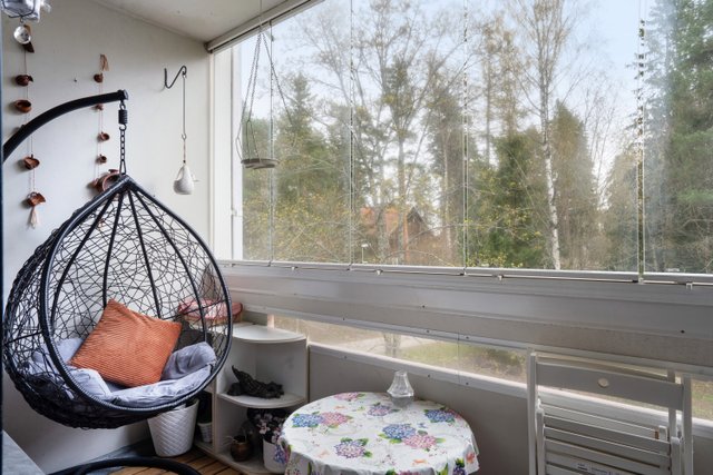 KOLMANNEN KERROKSEN KERROSTALOKOLMIO LASITETULLA PARVEKKEELLA