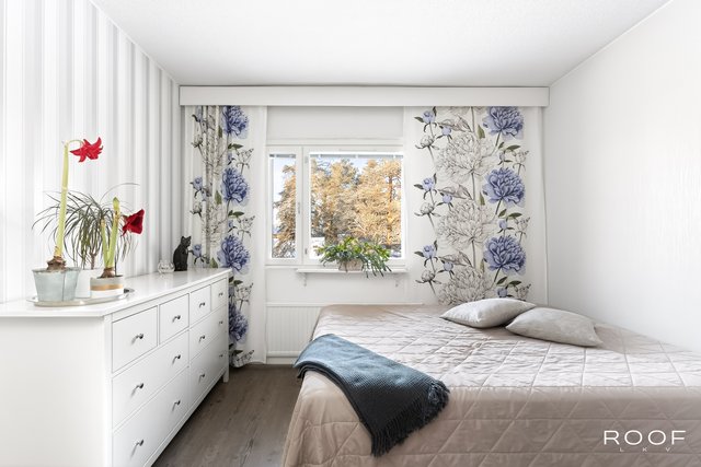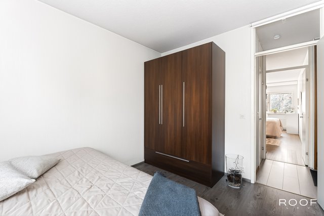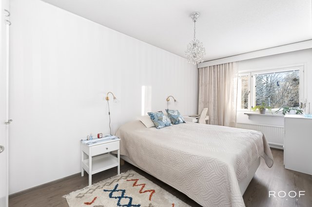 Asunnosta löytyy kaksi makuuhuonetta. Päämakuuhuoneessa on tilaa suuremmallekkin sängylle. Säilytystilaa löytyy makuuhuoneiden kaapistojen, sekä vaatehuoneen muodossa.
