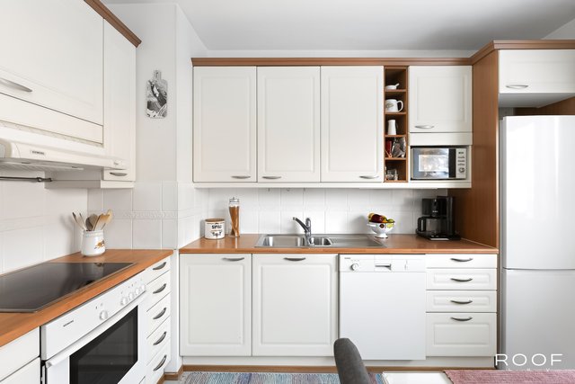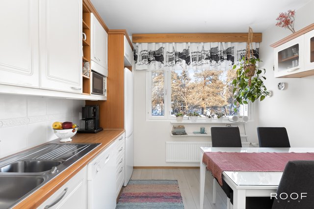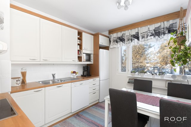 - Varustus: jääkaappi/pakastin, liesituuletin, astianpesukone. Liesi: keraaminen, erillisuuni. Lattia: laminaatti. Seinät: maalattu.
