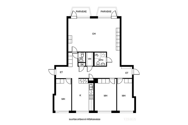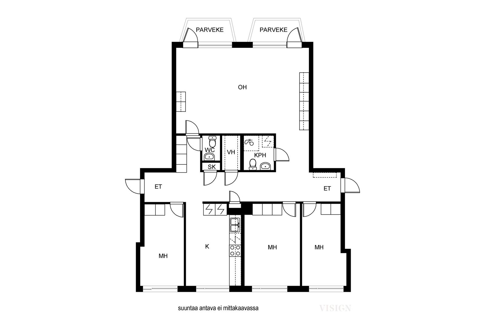 - Mainittu pinta-ala saattaa tämän ikäisessä kohteessa poiketa olennaisesti nykyisten standardien mukaan laskettavasta asuinpinta-alasta. Todellinen asuinpinta-ala voi olla yhtiöjärjestyksessä, isännöitsijäntodistuksessa ja esitteessä mainittua pienempi tai suurempi.