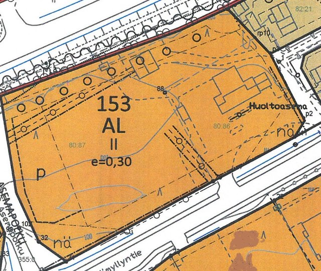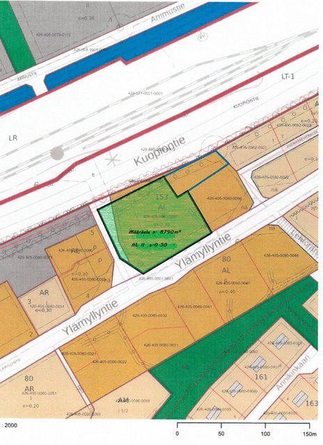 - Voimassa olevan asemakaavanmerkintä 153 AL II e-0.30