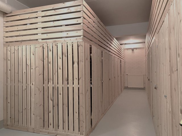 - Urheiluvälinevarasto, askarteluhuone, pesutupa, mankeli, uima-allas, ja ulkovarasto