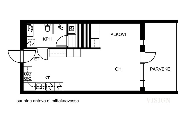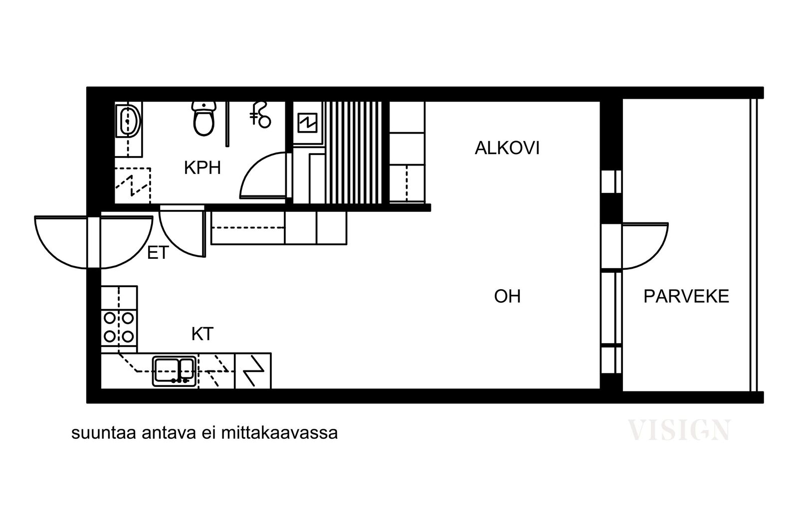 - Jääkaappipakastin, astianpesukone, erillisuuni, liesituuletin, ja kiinteät valaisimet