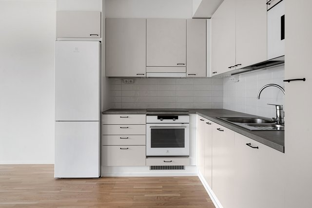 - Jääkaappipakastin, mikroaaltouuni, astianpesukone, liesituuletin, uuni, ja liesi