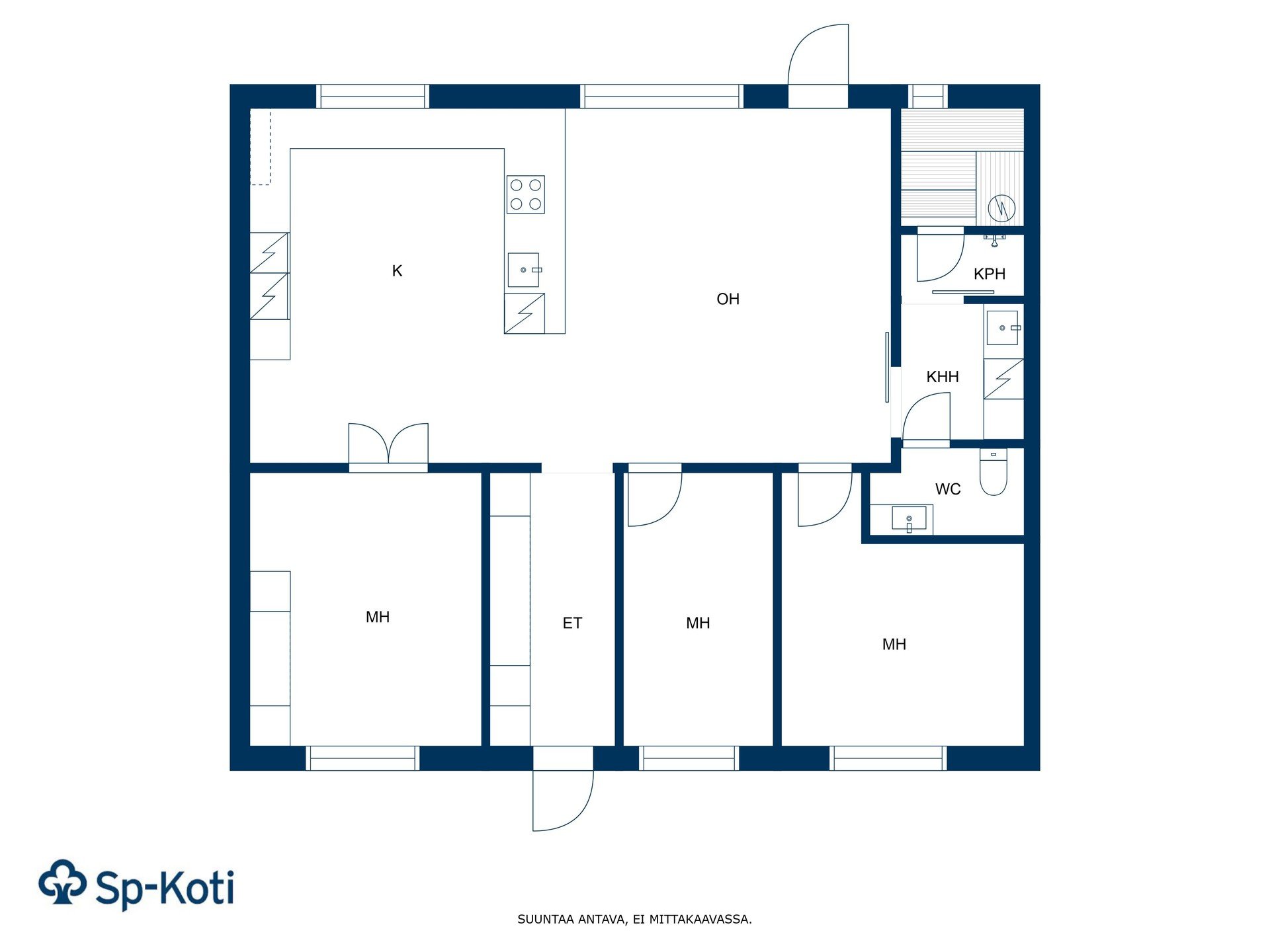 Asunnon pohjaratkaisu on käytännöllinen ja tilava, ja olohuoneesta on käynti etelään suuntautuvalle takapihalle, jossa suuri terassi kutsuu nauttimaan aurinkoisista päivistä. Uudistettu keittiö on tilava ja tyylikäs, ja sinne mahtuu isompikin ruokailuryhmä. Kolme makuuhuonetta tarjoavat mukavasti tilaa perheelle tai työhuoneelle.