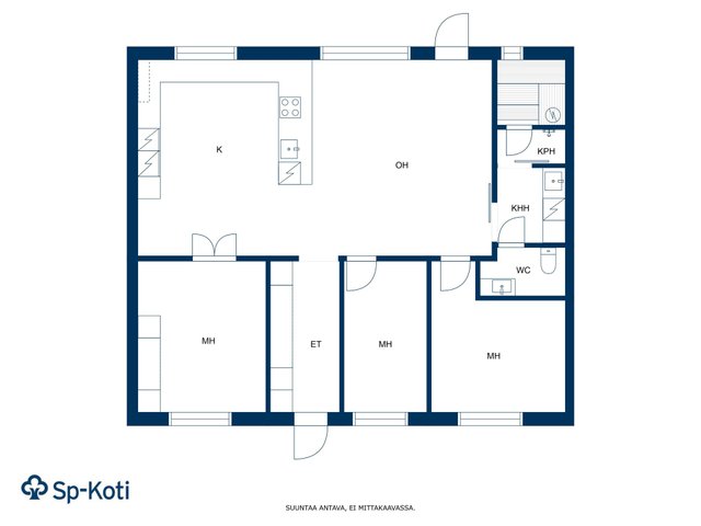 - Pesukoneliitäntä, pesuallas, pöytätaso, ja lattialämmitys