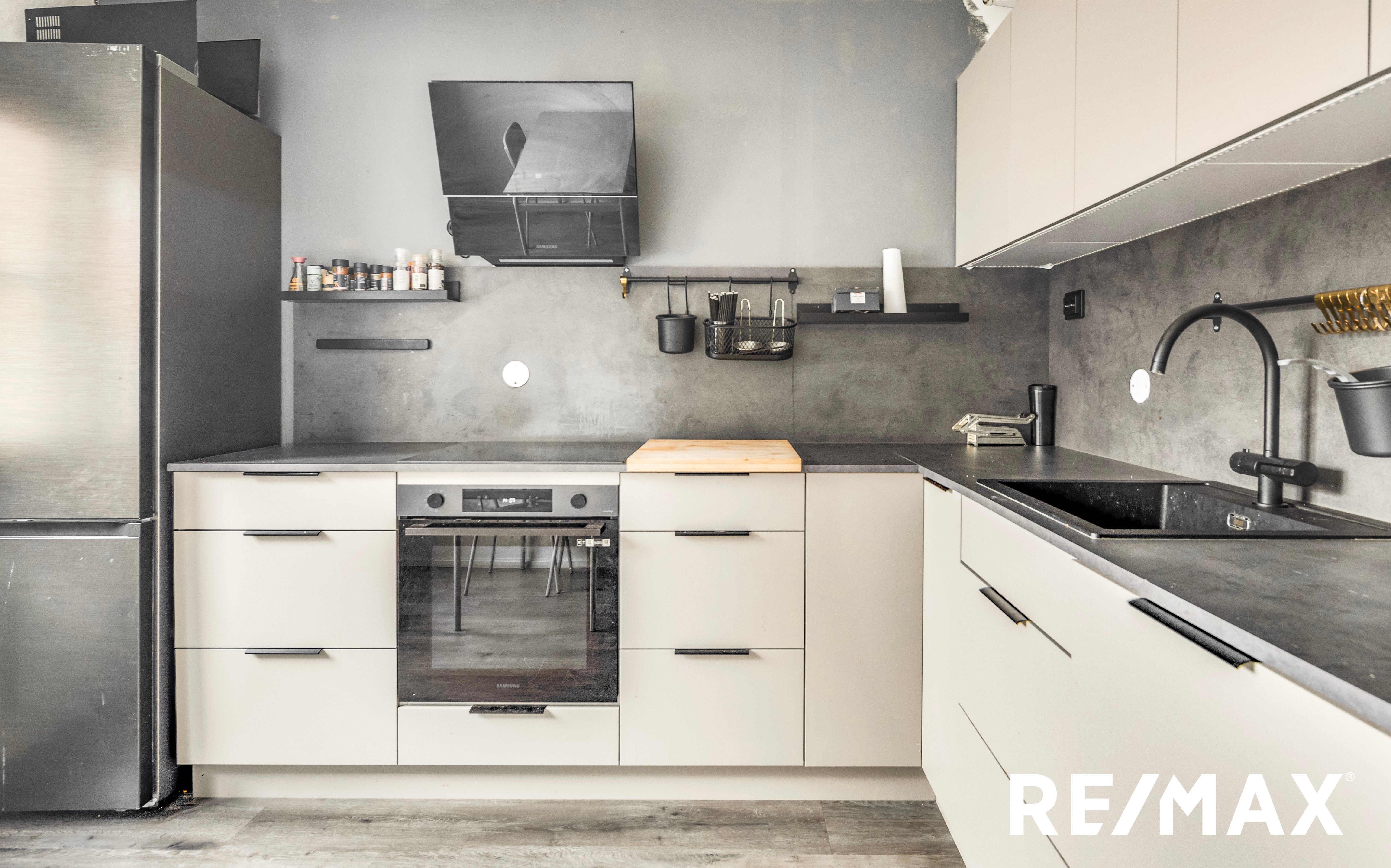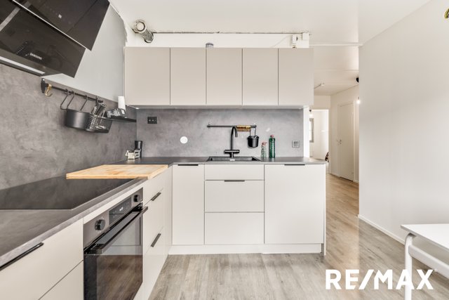 Asunnossa on kaksi makuuhuonetta, tilava olohuone sekä erillinen keittiö, jossa yhdistyvät tyylikkyys ja toimivuus. Kvikin valmistama keittiö edustaa modernia muotoilua, ja kokonaisuuden täydentävät laadukkaat kodinkoneet, kuten Mielen induktioliesi ja astianpesukone sekä Samsungin jääkaappipakastin ja erillisuuni. Keittiö tarjoaa erinomaiset puitteet sujuvaan arkeen ja ruoanlaiton iloon. Asunnossa on myös lasitettu parveke, joka tuo lisätilaa ja viihtyisyyttä.