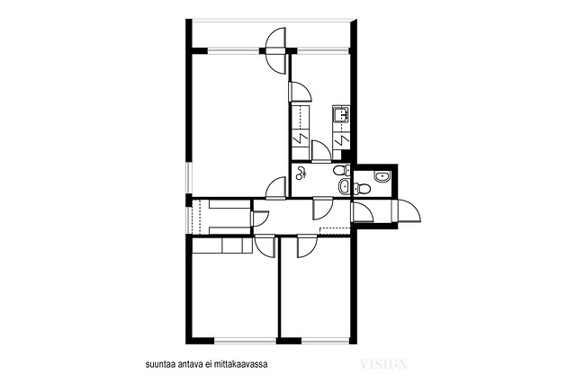 3 h, k, kph, erill. wc, vh, lasitettu parveke (Yj. 3h+k)