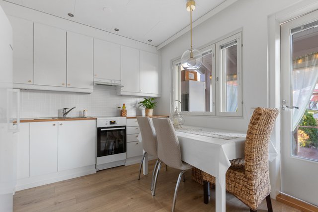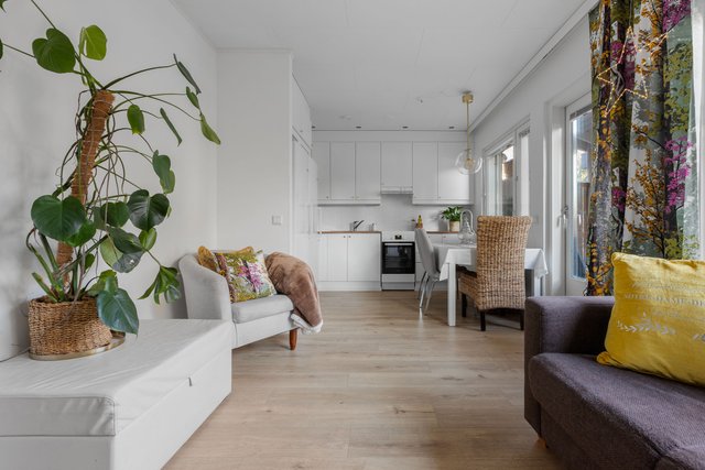 Uudehkossa taloyhtiössä on tarjolla hyväkuntoinen ja juuri pintaremontoitu rivitaloasunto yhdessä tasossa! Lasitettu terassi ja huolella hoidettu piha-alue on todella viihtyisä lisä laadukkaaseen asumiseen. Sinulla on myös kulku tälle päätyasunnolle aidatun pihan kautta.
