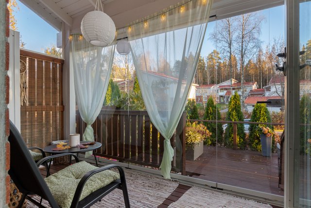 - Lasitettu terassi n 8m2, Lumon 2015 Iso piha-alue on pääosin ulkoterassia (10mx2,5m), valmistunut 2019, öljytty 2025