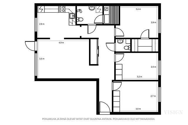- Suihku, wc-istuin, pesukoneliitäntä, pesuallas ja peilikaappi.