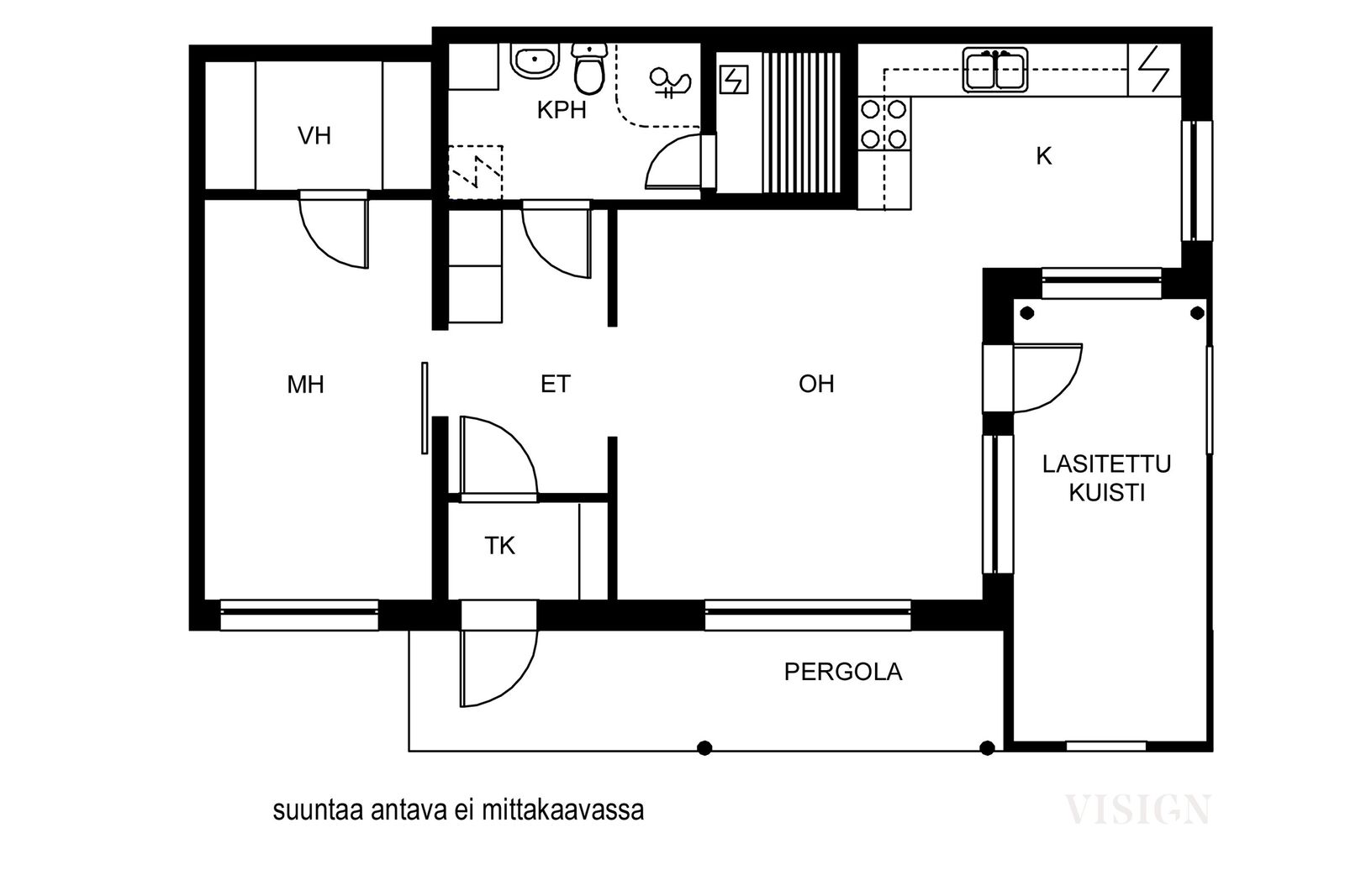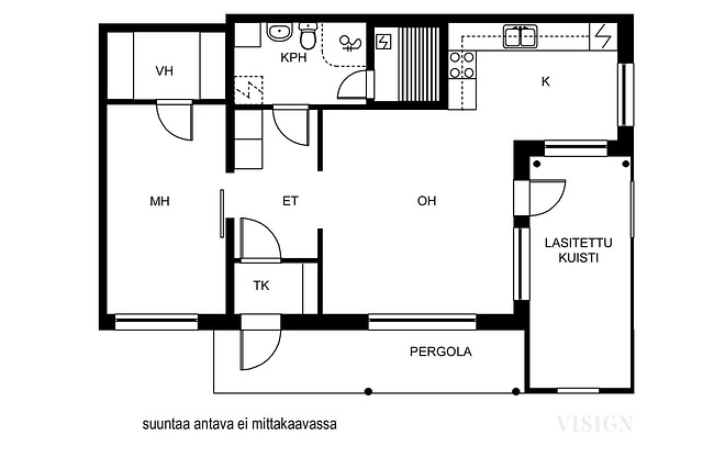 2h+k+vh+kph+s+lasitettu terassi+pergola (yj:n mukaan: 2h+k+s)