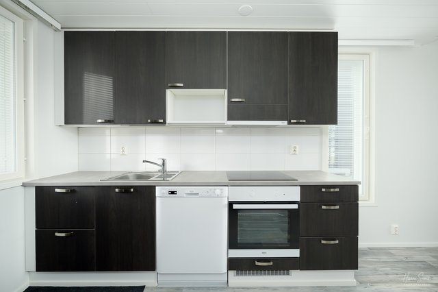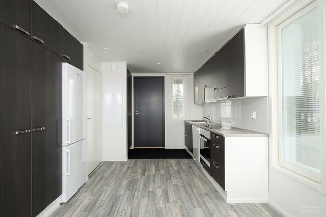 - Näppärä keittiötila ja ruokailutila. Kaapistoja mukavasti. Kodinkoneet: Astianpesukone, jääkaappipakastin, erillisuuni, liesitaso, liesituuletin.