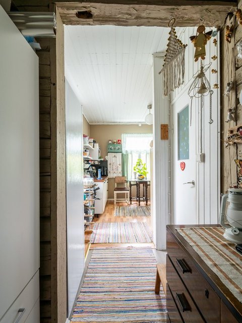 - Talossa on hirsirunko, ulkoverhous on lautaa ja katto huopaa.