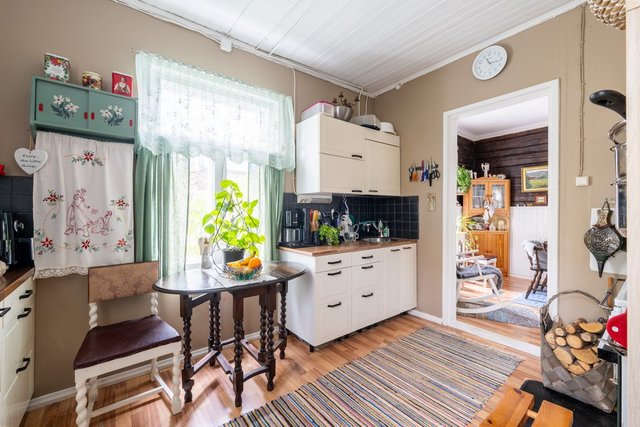Tämä viehättävä 1920-luvun hirsitalo sijaitsee rauhallisella alueella Lapinjärven Heinkinkylässä. Talon asuintilat ovat kahdessa kerroksessa ja sen asuinpinta-ala on noin 60 m². Alakerrassa sijaitsee keittiö, jossa on puuhella, ruokailutila ja olohuone, myös kylpyhuone ja erillinen wc sijaitsevat täällä.