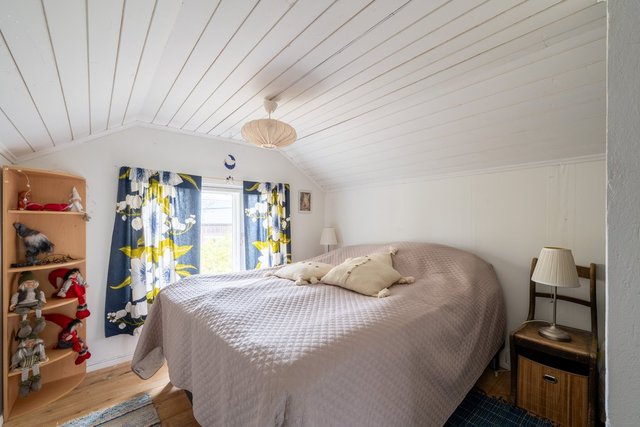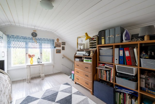 - Yläkerrassa ullakkokomerotilaa huoneiden molemmilla "poskilla".