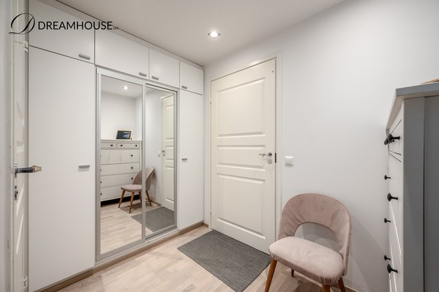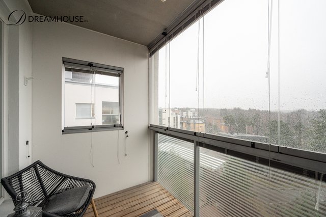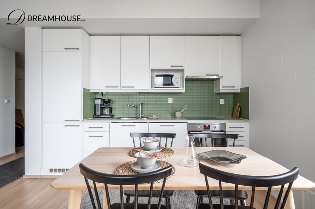 Avokeittiön yhteydessä olohuone, josta käynti lasitetulle parvekkeelle. Makuuhuoneessa iso vaatehuone. Tilava ja tyylikäs kylpyhuone.