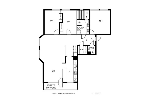 - Hoitovastike 605 € / kk, Yhtiövastike yhteensä 605 € / kk