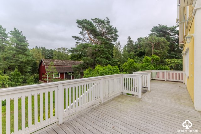 Den enorma glasverandan med utsökt utsikt över fjärden och stora terrassen inbjuder till avkoppling i kvällssolen, medan strandbastun – även den sanerad – erbjuder en genuin skärgårdsupplevelse intill en mjuk sandstrand och en stabil brygga för bad och båtliv.