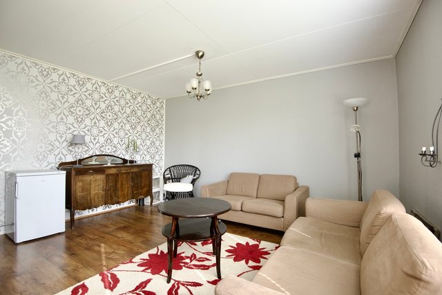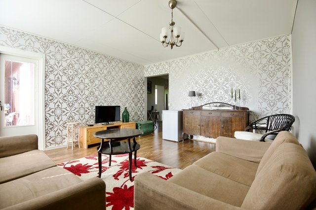 Lägenhetens två sovrum och rymliga vardagsrum med utgång till terrassen erbjuder bekväma utrymmen för vardagen.
