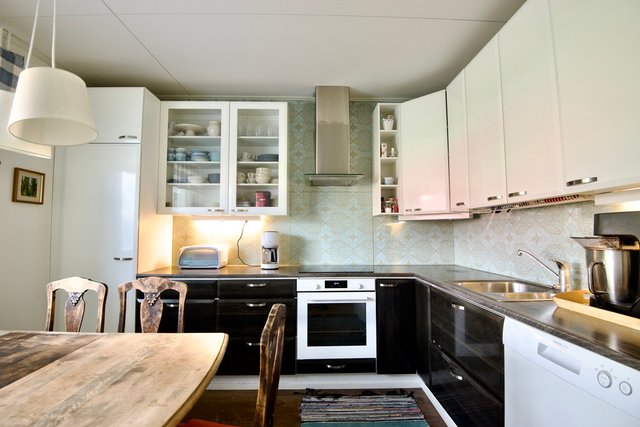 Kodin kaksi makuuhuonetta ja tilava olohuone tarjoavat mukavasti tilaa arkeen. Keittiö on varusteltu nykyaikaisesti, ja sieltä löytyy kaikki tarvittava, kuten induktioliesi ja astianpesukone. Saunassa rentoudut kiireisen päivän päätteeksi, ja oma terassi tarjoaa mahdollisuuden nauttia ulkoilmasta.