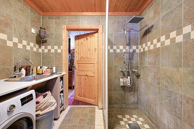 - Pesukoneliitäntä, suihkuseinä, suihku, ja kiinteät valaisimet