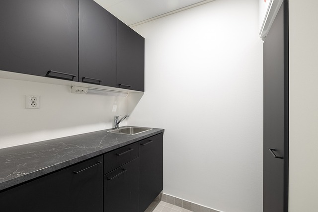 - Pöytätaso, pesuallas, pesukoneliitäntä, pyykkikaapit, lattiakaivo, lattialämmitys, ja silityspöytä/taso