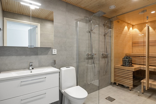 - WC-istuin, lattialämmitys, allaskaappi, peilikaappi, suihkuseinä, suihku, ja kiinteät valaisimet