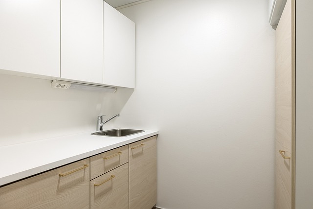 - Pesuallas, silityspöytä/taso, lattialämmitys, pesukoneliitäntä, lattiakaivo, pyykkikaapit, ja pöytätaso