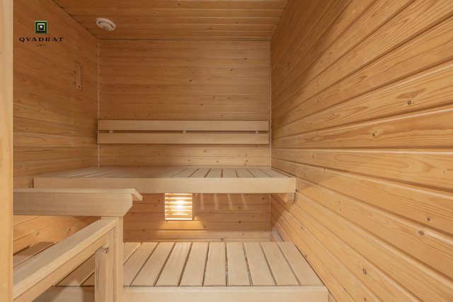 Erillinen makuuhuone sisäpihalle tarjoaa rauhallisen vetäytymistilan. Tilava kylpyhuone on viimeistelty mikrosementillä, joka tuo modernia ja saumattoman eleganttia ilmettä, ja oma sauna kruunaa kokonaisuuden tuoden arkeen ripauksen luksusta.