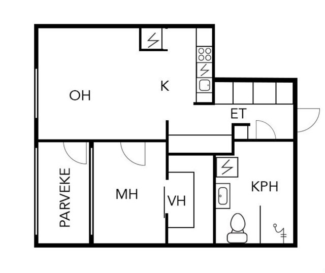 2h, avok, kph, vaatehuone, las. parveke